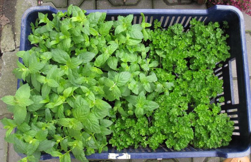 Máta a petržel v květináči |